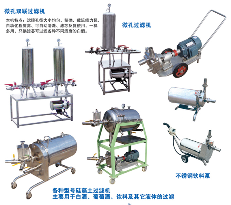 硅藻土过滤机应用范围:硅藻土白酒过滤机适用于白酒、果酒、葡萄酒、保健酒、饮料、糖浆、酱油、醋等液态制品的澄清过滤。